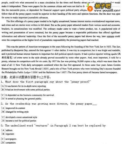阅读总的来说要准却率高,这个部分那份相对简单。最好每作一道阅读就涂到答题卡上。