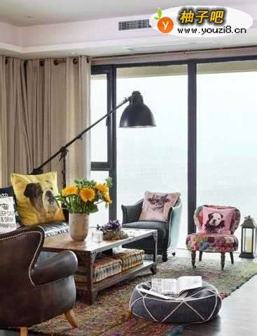飘窗搭配攻略:客厅的飘窗台被打扮的极具艺术气息,飘窗处搁置摆放这主人的创作作品和动物玩偶。从这些就可以看出来,主人那一颗充满童真的心,花束也代表浪漫和甜蜜。一个小小的飘窗成为了一个艺术角落。