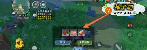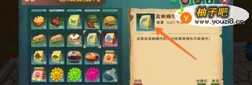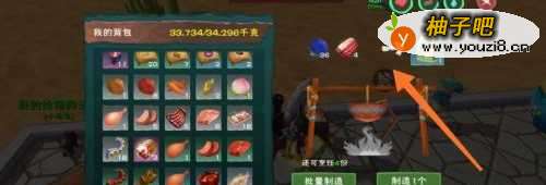 4第四步,准备好烹饪锅以后,我们点击打开烹饪锅,然后放入材料-饲喂肉块和蓝蘑菇,然后点击按钮制作一个,详细如下图