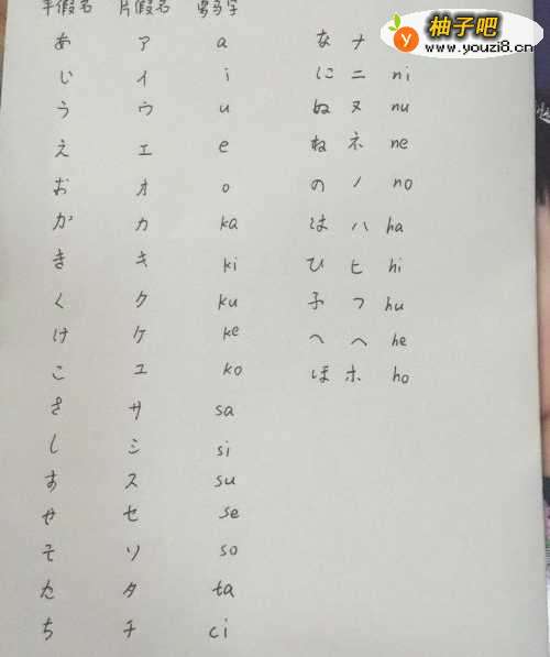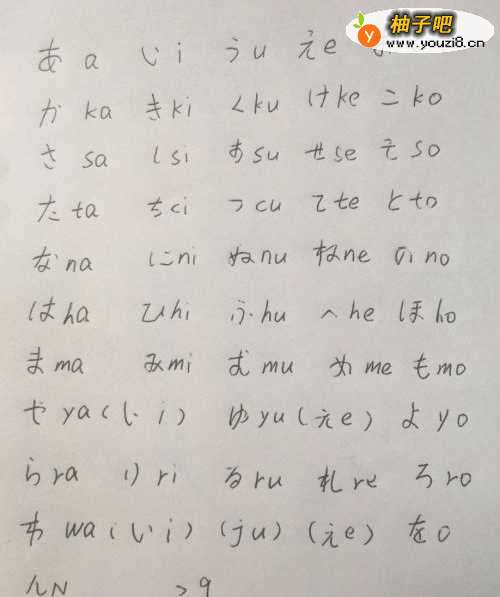 日语入门首先要背几张表,我也是刚学日语,自己抄写了几张,写得不好不过刚开始就是这几张表反复背诵。