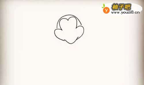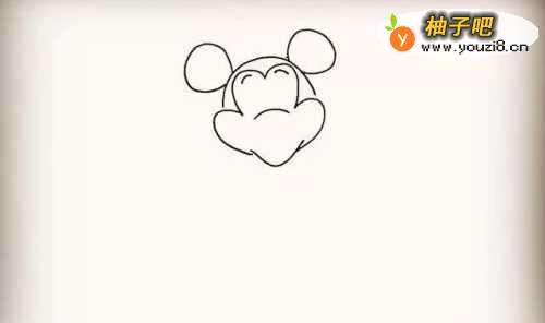 首先画一个半圆来代替米老鼠的头部。