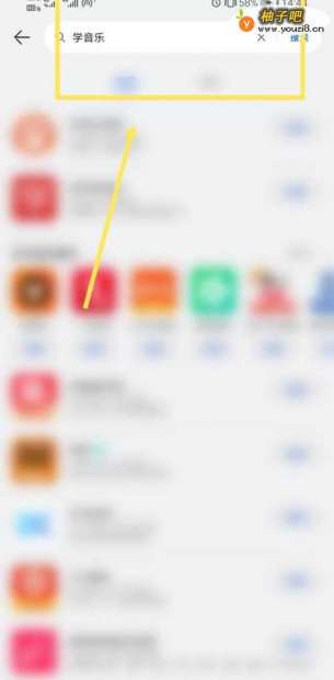 3进入之后,我们在搜索框菜单内输入学音乐,再点击搜索。