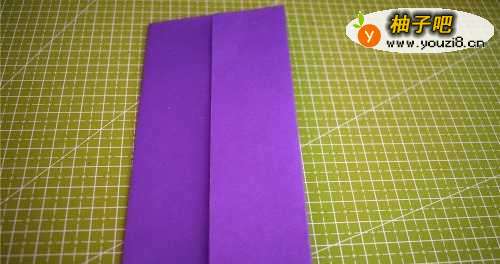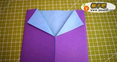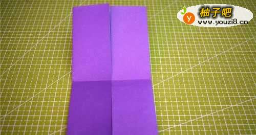 3以步骤2折痕为参照线,将折纸的两边往中心对折。