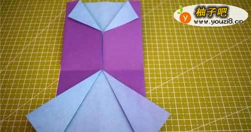 6最下方的两个角往上折叠,然后往背面折叠一次,纸衬衫完成。