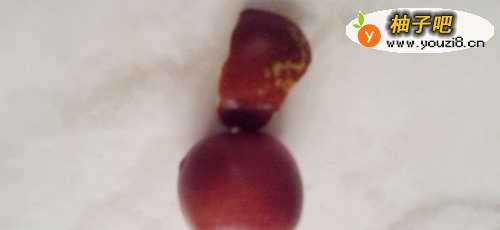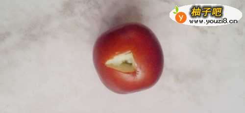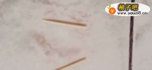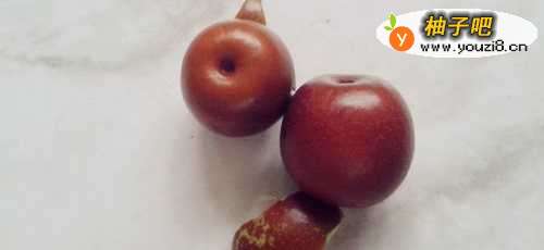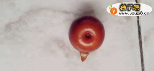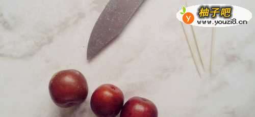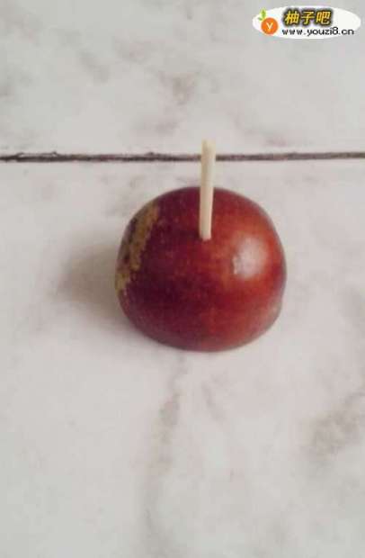 11把带核的那半枣再切去枣核,上面插上半支牙签,当鸟的脚托。