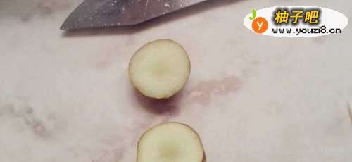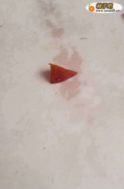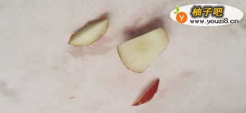 3取没核的一半,两边切两刀,只取中间的部分,当鸟的尾巴。
