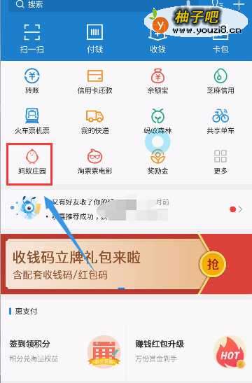 我们首先参加蚂蚁庄园课堂答题活动,进入手机支付宝,点击蚂蚁庄园,如下图所示