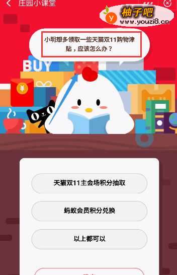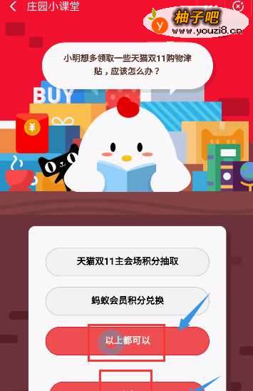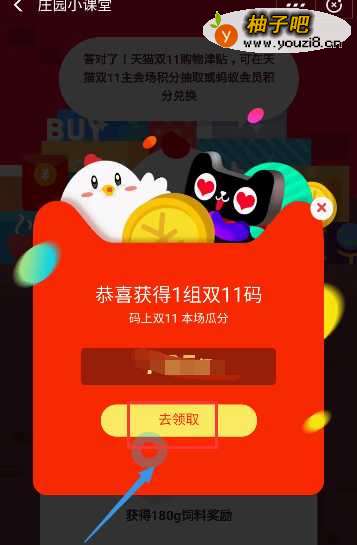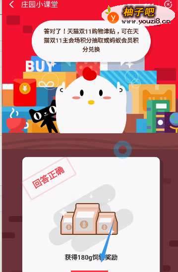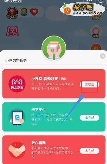 3进入领饲料列表,第一个就是双11课堂,点击去答题,如下图所示