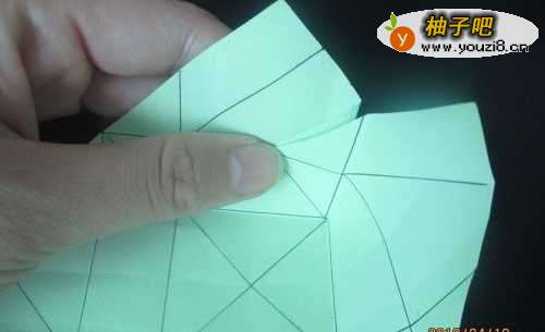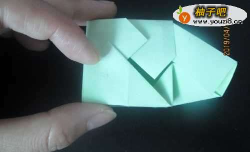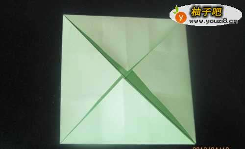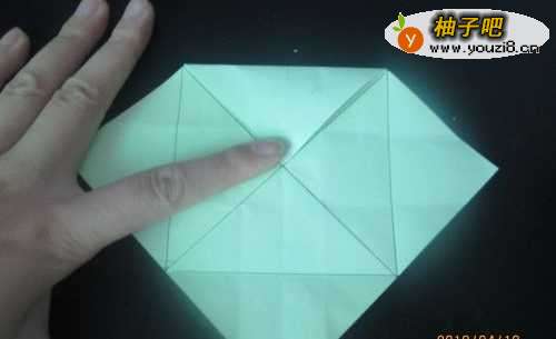 8压住中间的正方形,沿折痕如图折上来
