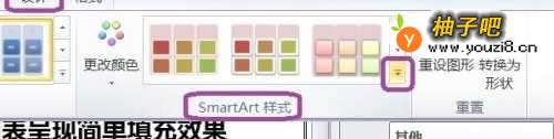 3切换至SmartArt工具的【设计】→【SmartArt样式】→【其他】的下三角形按钮,如下图所示。