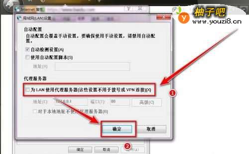 5在局域网设置窗口中,去掉“lan”前面的对勾,点击“确定”,即可正常打开网页。