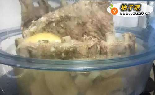 3蒸好后,放凉。只取猪肋排,汤汁和蒸料不用。放入保鲜盒冷藏一晚