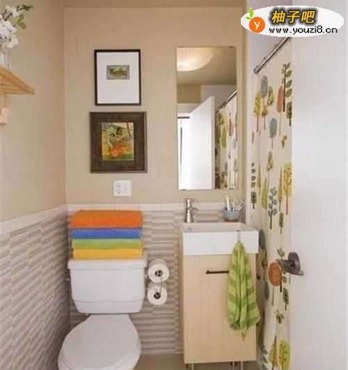 63平米以下的小卫生间可以尝试用一种彩色调来装修,卫生间空间小的弊端除了用装饰物来掩盖之外,鲜艳的彩色也会让小卫生间变得更加生动、吸引人,给人一种眼前一亮的惊艳。