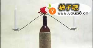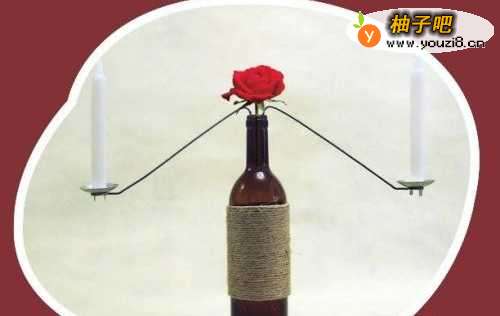 12结束制作之后,还可以在酒瓶中插上一支火红的玫瑰。那这个diy浪漫烛台就完美完成啦!