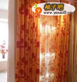 植绒面料的窗帘较为厚重,吸音、遮光效果好,选用红、黑配合的窗帘,有助于尽快入眠。