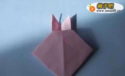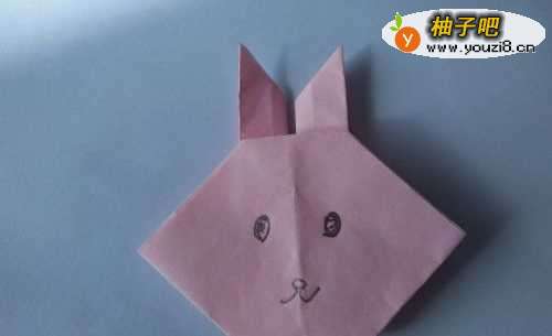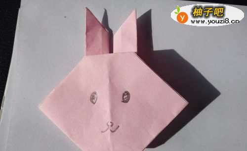 7最后给兔子画上眼睛、嘴巴、鼻子,一个可爱的兔子头就折好了。