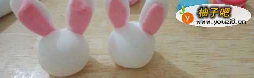 3然后将两对耳朵粘在兔子的脑袋上即可;