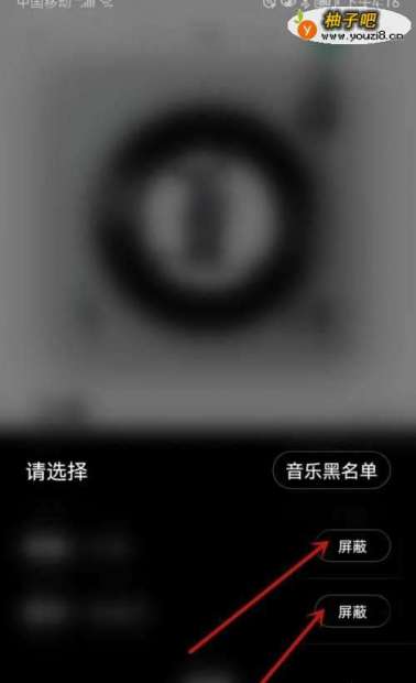 3打开请选择的面板中点击屏蔽(歌名或歌手)选项