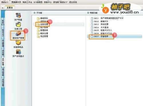 2在资产管理页面,点击【固定资产管理】→【业务处理】→【设备检修】。