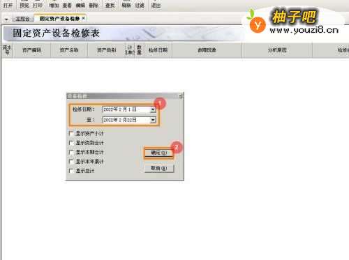 3在设备检修过滤页面,选择检修【起止时间】和【显示项目】,点击【确定】即可。