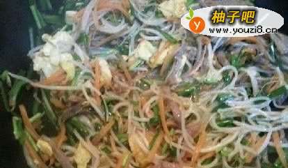 15在倒入韭菜一起翻炒加入适量的盐翻炒出锅装盘就可以。