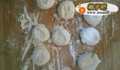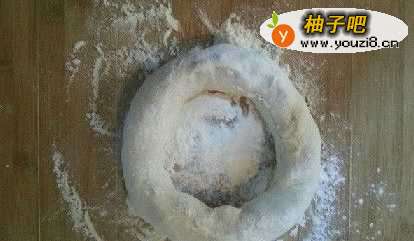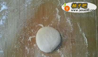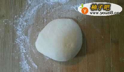 3取出面团案板上撒适量的面粉揉搓5分钟左右。