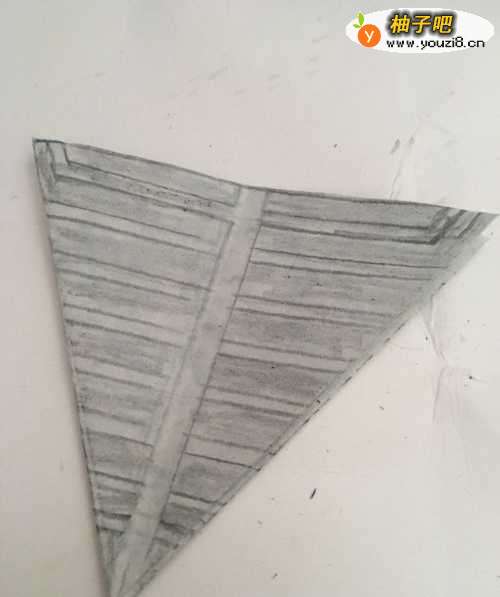 4第三步 折叠完之后 拿起绘图铅笔 画上蜘蛛网的中线 然后再画上蜘蛛网的其它线条