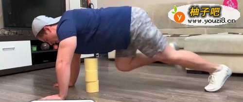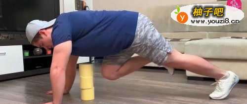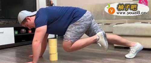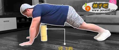 首先,做平板支撑的姿势,并在胸部下方放3卷卫生纸。