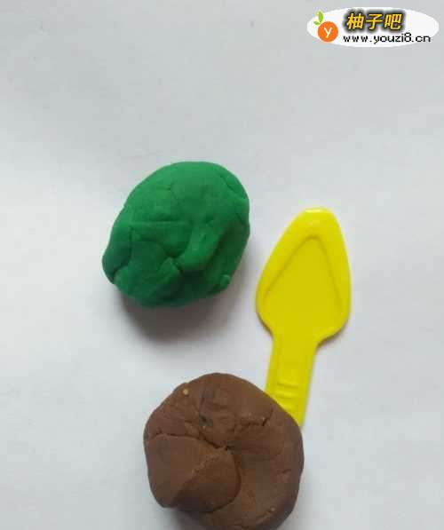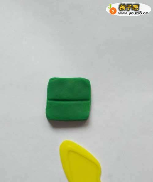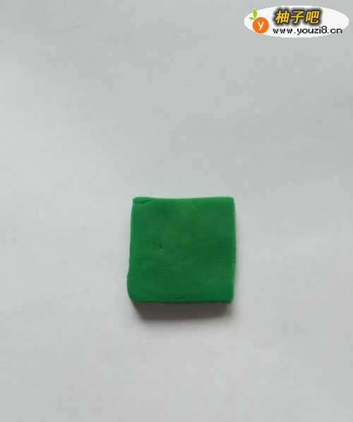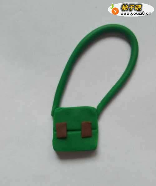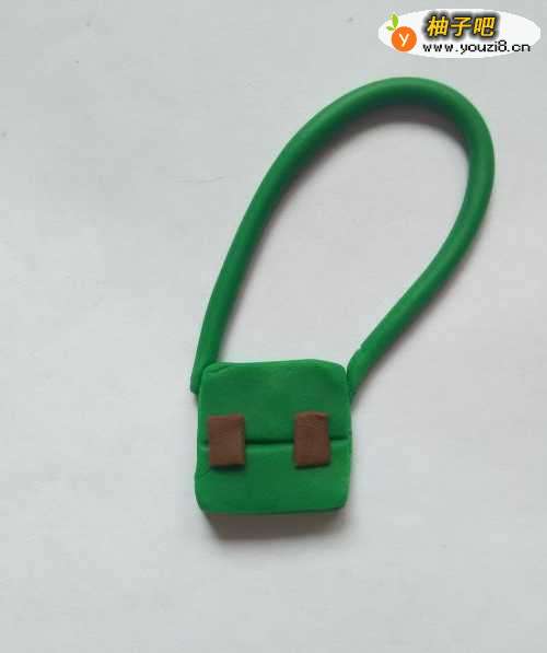 过去的孩子们都背布的绿书包,下面就用彩泥做一个绿色的书包。