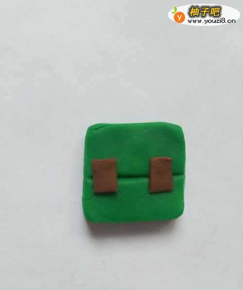 5用棕色捏两个小的长方形,当作书包上的卡子。