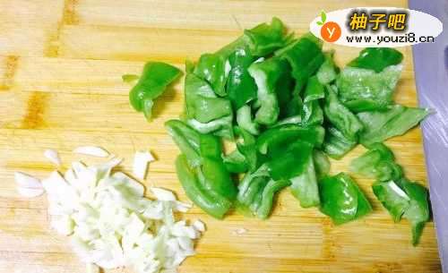 2在把鸭血焯水的过程中可以先把蒜瓣切碎,青椒切成片备用。
