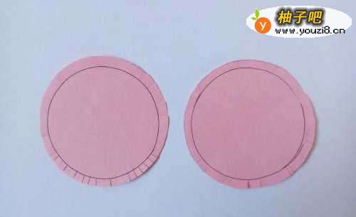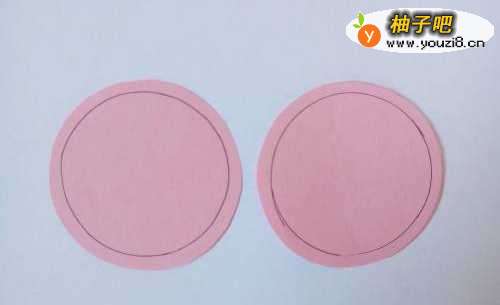 画两片圆形纸片,留出0.5cm的边,剪下来。