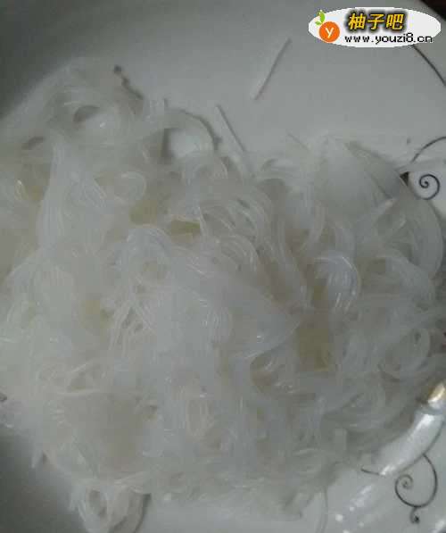 2先在锅中坐水,水开后,将粉丝放入锅中煮熟。