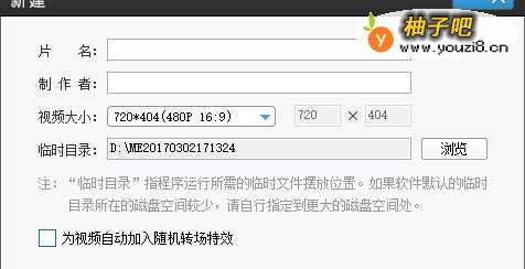 首先我们需要打开剪辑软件,如果我们的电脑上没有这个软件我们则需要下载一个,双击点开后会看到屏幕上弹出一个窗口,如图所示,我们需要填写好片名和创作者,点击确定。