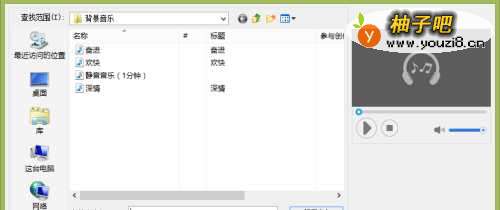 5然后我们将会看到一个“请选择一个背景音乐的对话框”,我们可以直接选择其中一个背景音乐,也可以在左侧选择自己电脑里面的音乐,点击确定即可。