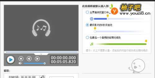 6如图所示,在该界面设置好开始时间和结束时间,如果想让整个视频都导入背景音乐那就只要把结束时间改成视频总时间就行了。