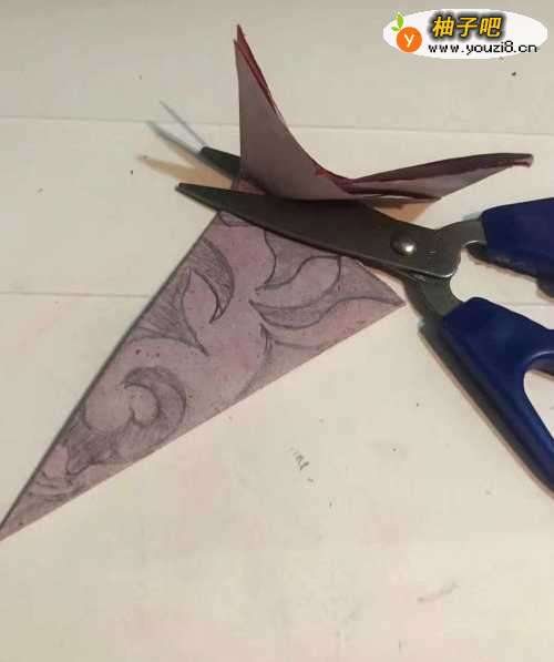 6第六步 都画完之后 涂实一下各个需要剪掉的部位 再拿起手工剪刀开始裁剪 首先把界限以外多余的彩纸剪去