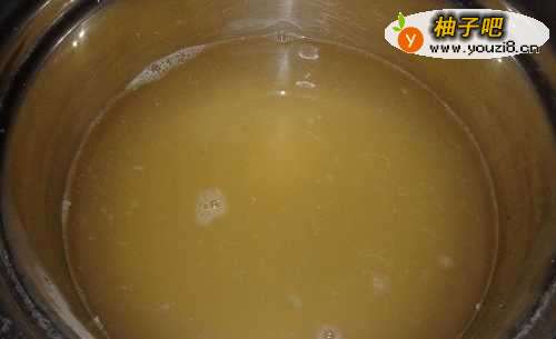 2锅中倒入高汤,将大米和小米一同放入锅中熬煮20分钟。