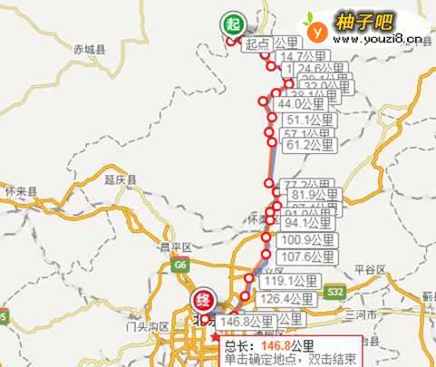 5回京,为增加测距,终点设定在五道口,回京约146.8公里