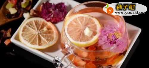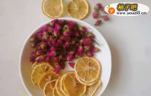 干柠檬片含有丰富的维生素C,既能够提高人体的机体抵抗力,又能排毒养颜;干玫瑰含有多种维生素及微量元素,味甘微温,能有效行气解郁,和血散瘀。经常使用干柠檬干玫瑰泡茶,能养颜美容,延缓衰老。