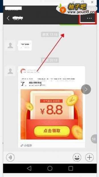 6如果要举报个人群发帐号,点击后进入聊天窗口,在右上角会看到有一个: ...按钮,点击它进入另一个页面内。