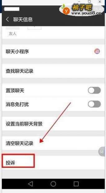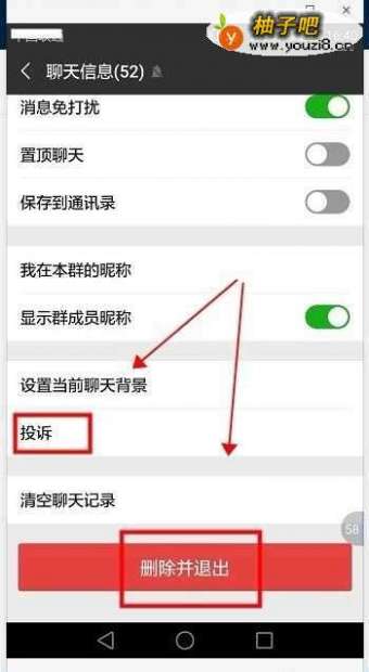 3点击群设置页面后,拉动页面向下,在下方找到并点击:投诉,点击它进入投诉窗口页面内。