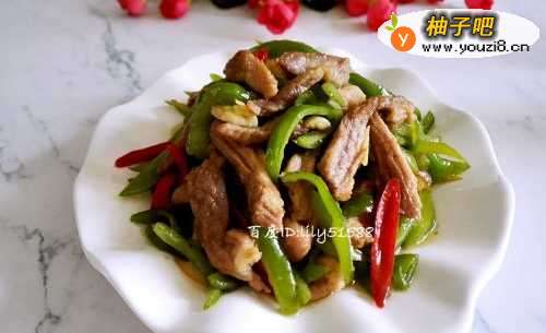 7一道非常简单又好吃青椒炒肉就做好了,装盘就可享用了。