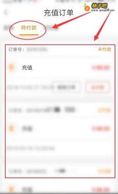 3充值订单窗口的全部选项卡下,显示了所有待付款和已付款的充值单。
