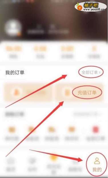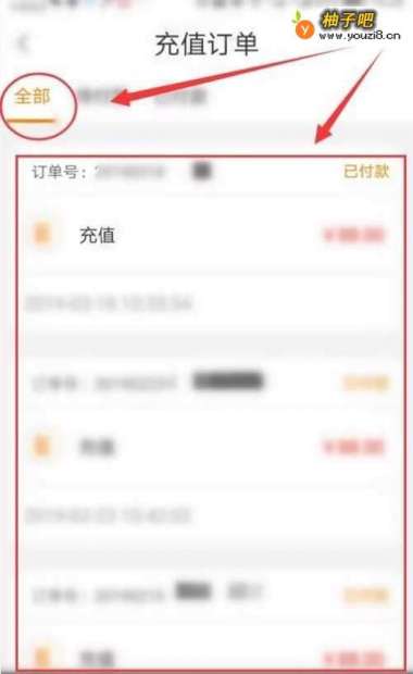 我的选项卡中,在订单中的全部订单下,可以查看充值订单。