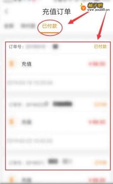 5已付款选项卡下,显示了所有已完成付款的充值单。