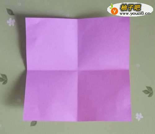 2对折成十字折痕,然后顺着折痕聚合起来,如图所示。