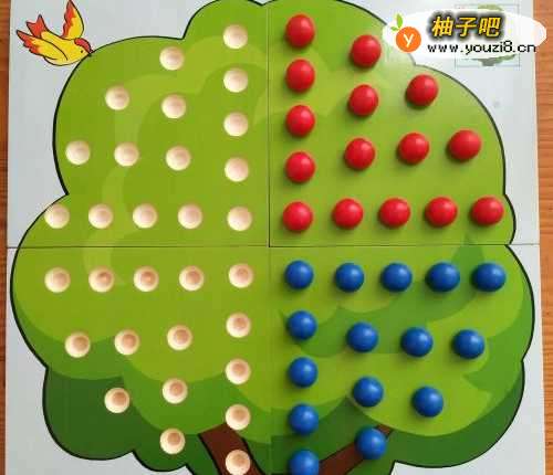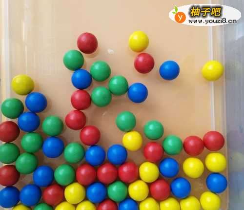 准备好彩色的圆形小果球,分别有蓝色、红色、黄 色和绿色。