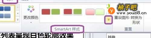 3切换至SmartArt工具的【设计】→【SmartArt样式】→【其他】的下三角形按钮,如下图所示。