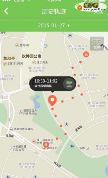 进入历史轨迹页,可根据日期、时段查询宝贝历史位置情况。